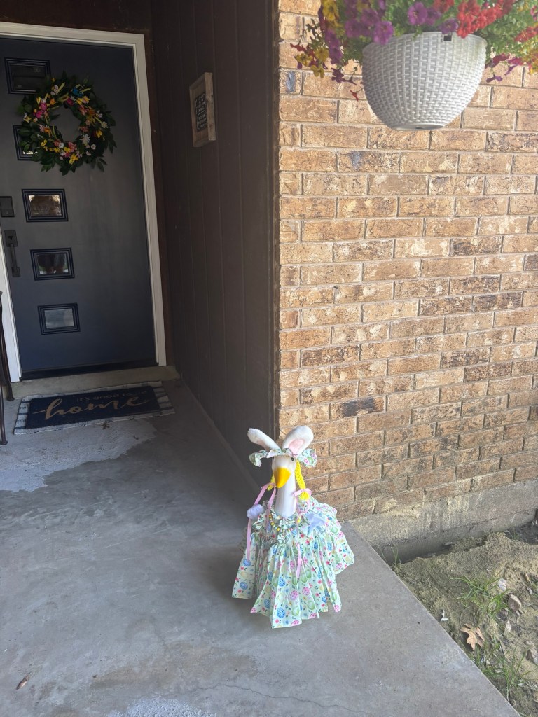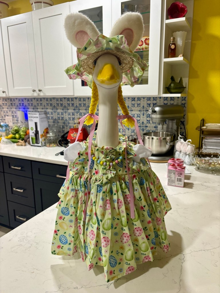 So—this Lenten season, Gonzo is wearing her Easter best, and I am experiencing an unreasonable amount of joy. Turns out, sometimes fulfillment arrives not in the form you expected — sometimes it shows up feathered, plastic, a little tacky, and wearing a tiny seasonal outfit.